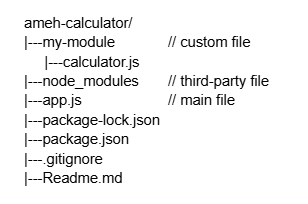 Project structure Project Setup Create directory and cd to the directory mkdir my_module cd my_module Initialize and install third-party module npm init -y npm i chalk Update the package.json file Continue reading Creating a Node.js calculator application